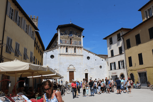 It was not long before we descended the wall and passed by the Duomo di San Martino to enter a sprawling square buzzing with a bazaar. It was the Antique Market of Lucca. Many vintage items were on open display and the energy there was electrifying. I wished I could buy some exquisite glassware but carrying them back home was a task! We continued walking through the maze of lanes till we reached the Basilica of San Frediano. The walls of these structures with its frescoes and ancient splendour is still amazing and one feels transported back in time to the medieval era.