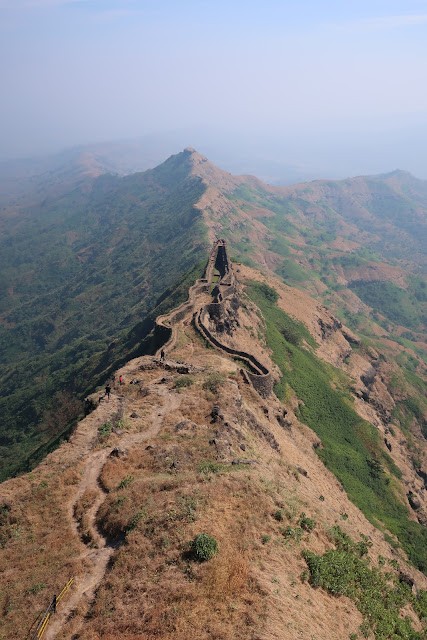 Maharashtra is known as the Land of Forts and rightly so. You find numerous and all kinds of forts here - be it a hill fort, sea fort, land fort or watch towers - you find them all in this one state. 'Fort' in English translates to ' Durg' in Sanskrit, which is derived from the word 'Durgamam' which means difficult to access. The Sahyadris' terrain, characterised by flat tops, precipitous inclines and surrounded by dense forests, are certainly difficult to access and hence were naturally suited for building forts. Maharashtra has close to 350 forts nestled in the rugged Sahyadris. Almost every peak in this region of the Western ghats seems to have a fort! Many of these forts are still in good shape and almost all of them have a story to tell - A story of valour, sacrifice and undying love for one's motherland. These forts were the founding pillars of Shivaji's Hindavi Swaraj and are now a mute testimony to the glorious history of Marathas. The same forts, unfortunately, are a witness as well to the many battles and defeats inflicted by the British army that led to the downfall of the Maratha empire. Now that I am in Pune, the hub of most fort treks in the Sahyadris, I am going to try and capture all my trekking experiences to these forts, on my blog. The trekking season has begun and I hope to visit as many forts as possible before the season ends. I hope you enjoy reading my trekking experiences and get a peek as well into the glorious history of Maharashtra. I will begin my series from Torna, the firt fort to be conquered by Shivaji to come under the fold of Hindavi Swaraj. Go on, read about it and enjoy. Name: Torna (Also known as Prachandagad) Height: 4603 feet/1403 metres above sea level Trek Category: Medium-Difficult trek Equipment required : None but w ear appropriate trekking shoes for this trek Base Village: Velhe, 75 kms from Pune Time to trek uphill: 2-3 hours Where to stay: Staying overnight is possible at the Menghai devi temple on the fort or in self-pitched tents Where to eat: Carry your own food & water Best time to visit: November-February Guide services on the trek - Not required as the trekking path is quite straightforward and evident Brief History of Torna: Torna, the highest hill-fort in Pune district is situated at a height of 1403 metres above sea level. It is supposed to be built by the Shaivaites somewhere around the 13th century and was earlier known as Prachandagad (Prachanda = Massive; Gad = Fort) due to its massive area. It is also the first ever fort to be captured by Shivaji Maharaj in his quest of Swarajya. In 1646, Shivaji captured this fort at a tender age of 16 and renamed it as Torna after the Tornajai devi temple near the main entrance of the fort. He is said to have found a hidden treasure near the Kothi darwaza of this fort during an excavation and he used this wealth for the restoration of this fort and also to build the majestic Rajgad nearby. The majestic hill fort of Torna Getting to Torna from Pune: Torna is situated just 75 kms southwest of Pune along the Mumbai-Bangalore Highway (NH 48). After an approximate 45 kms of ride towards Bangalore , one will come across Narsapur phata where one has to turn right and reach Velhe village, which is the base of the fort. Please be on the lookout for this phata as it can be easily overlooked. The road conditions are good in most parts and manageable in a few patches :) Public /State Transport buses also ply between Pune to Velhe. Local jeeps/taxis are also available between Velhe and Narsapur phata. Parking: Parking is available in plenty at the base of the fort. Vehicles can be parked either: 1) near the local police station in Velhe, or 2) a little further along the road to the fort uphill (which saves 1-1.5 hours of uphill walk in the trek) Food & Toilet Facilities: Food options are limited at Velhe and more so on the route towards the fort. There are a few shacks selling buttermilk and nimbu paani (lemon juice) along the way uphill but absolutely no food. On the top of the fort, there was a man selling bhel to the trekkers but that too is not guaranteed on an every time basis. Such food vendors, as I gathered, are discouraged as they tend to generate litter on the fort. There is also no reliable source of potable water on the top of the fort. There are a few carved water tanks/cisterns on the fort but it is better to carry your own drinking water. The nimbu-paani shack along the route Please remember to carry some nutritious food and at least 2 litres of water per person before you embark on this trek. There are obviously no toilets on the way to the fort and even on the fort. One has to answer the call of nature amidst nature itself :) The Trek: The trek is slightly arduous and comes under the "Medium Difficult" Category. It takes around 2.5-3 hours from Velhe and 1.5-2 hours from the 2nd parking lot to the fort. The road continuously takes one uphill along a mud path strewn with loose stones and some seriously steep, rocky patches. It is recommended to wear appropriate trekking shoes with a good grip to climb this particular fort. This path get too slippery during the monsoons and this trek is best avoided during the monsoons, especially, if you are trekking with young children. The route to the top The trek offers some spectacular views as we ramble along the path. The backwaters of the Chapet Dam and the beauty of the undulating Western ghats give us several excuses to slow down and heave in our puffing breaths. Once we complete around half the trek, the rocky patches begin. Railings are provided in these patches for support where we literally have to propel our bodies upward using all our 4 limbs and get a strong foothold at every step lest we slip down. The railings are really needed to cross these rocky patches. A big 'thank you' to whoever thought of installing them... Backwaters of the Chapet Dam Exploring the fort: Once we get through these rocky patches, we leave the railings behind and 
