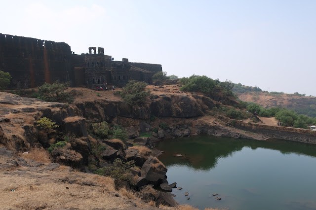 In front of these towers is the deep Ganga Sagar Lake. It is said that water from the Ganges was brought on to the fort for the coronation ceremony of Shivaji Maharaj. After the ceremony, the remaining holy water was emptied into this lake and hence the name - Ganga Sagar. This lake never goes dry even in the harsh summers and was a reliable water source for the fort in the olden days.