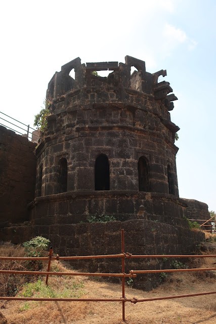 The Queens and the other royal ladies used the Mena darwaza to access their quarters, while Shivaji and the other nobles used the Palkhi Darwaza on the other side to enter the premises. Just to the right of the Palkhi darwaza are some deep rooms which are believed to be granaries of the fort. Next to the granaries is Shivaji's royal bath with an impressive drainage system. Adjacent to it is a secret room where confidential meetings were supposed to be held. In the front are the remains of the watch towers which were built to keep an eye of any untoward movements near the fort. They were 7-storied in structure when they were built, out of which just 3 floors remain today.