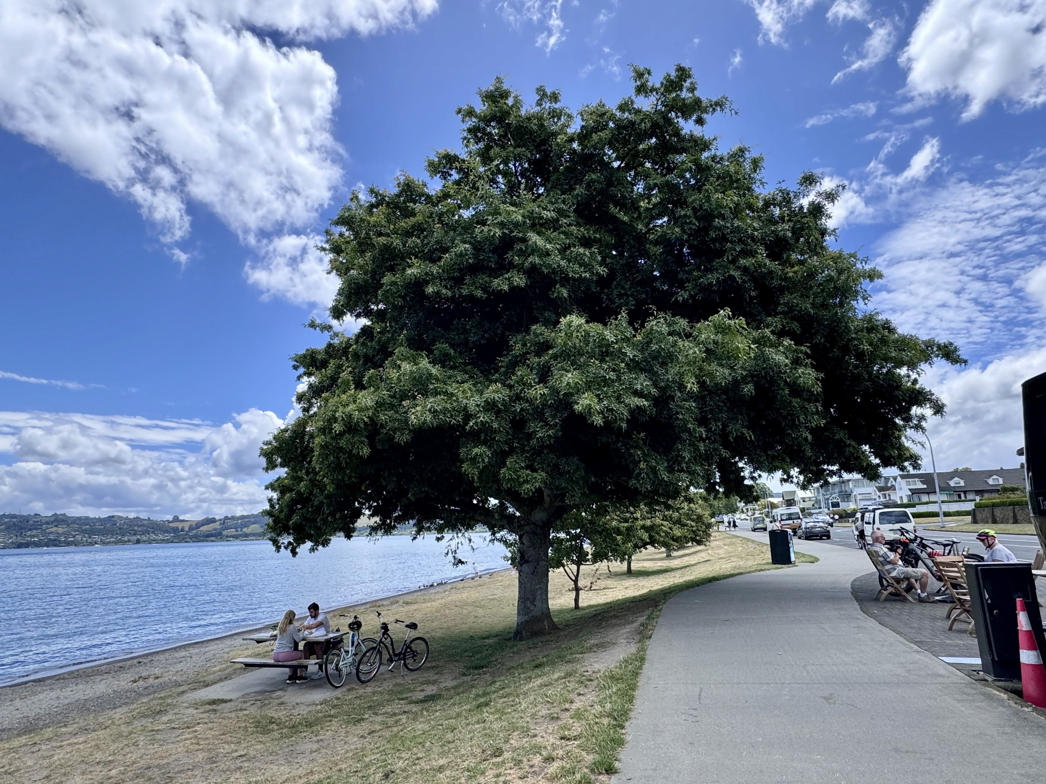The expansive bluish-green volcanic lake is undoubtedly the main attraction of Taupō. We decided to explore the lakeside by walking along The Great Lake Pathway - a flat paved walkway along the eastern side of the lake starting from the Taupō centre going south to the Two-Mile Bay. The walk is picturesque offering numerous picnic spots, elevated viewing points and a splendid exotic-looking lone coffee cart (serving freshly brewed strong coffee) along the way.