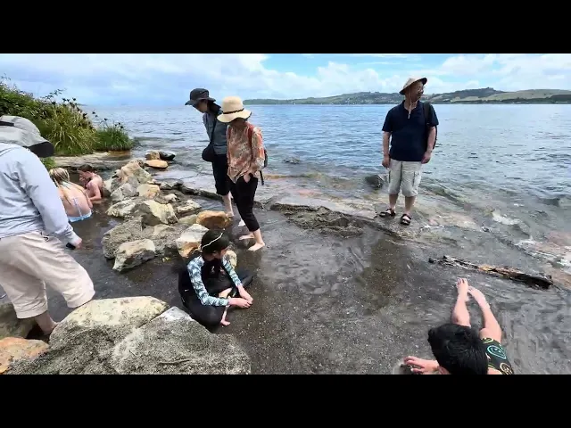 We walked leisurely for an hour or so (around 3.5 kms) till we reached the Hot Water Beach. This is a must-see spot in Taupō known for its hot geothermal springs very close to the Two Mile Bay. It is uniquely fascinating to see the hot steaming water trickle out from the ground and flow into the lake. The beach itself is small but is a great spot for families with kids who can enjoy in the warm pools formed near the spring.