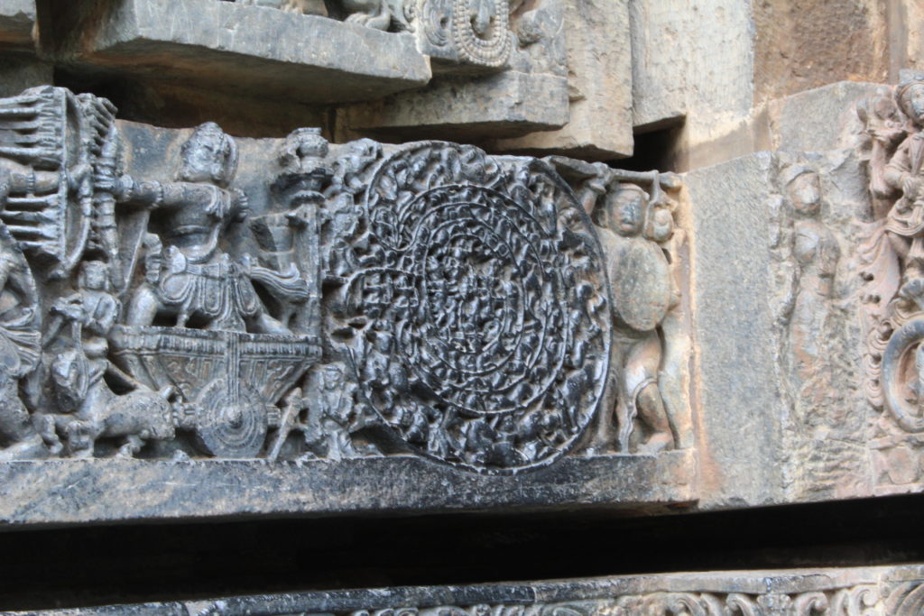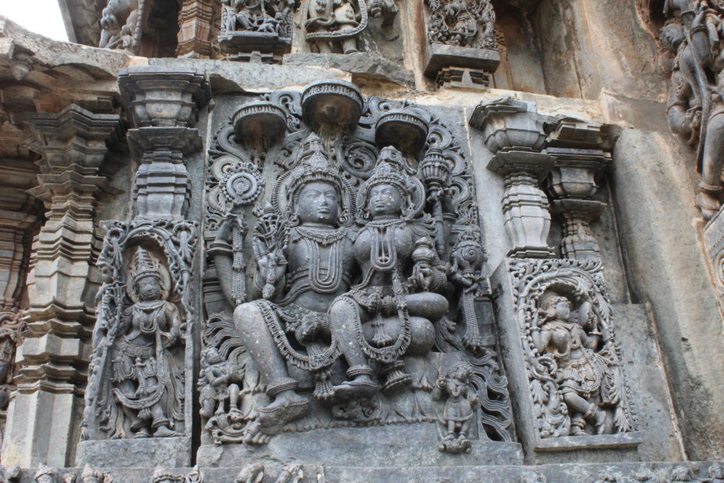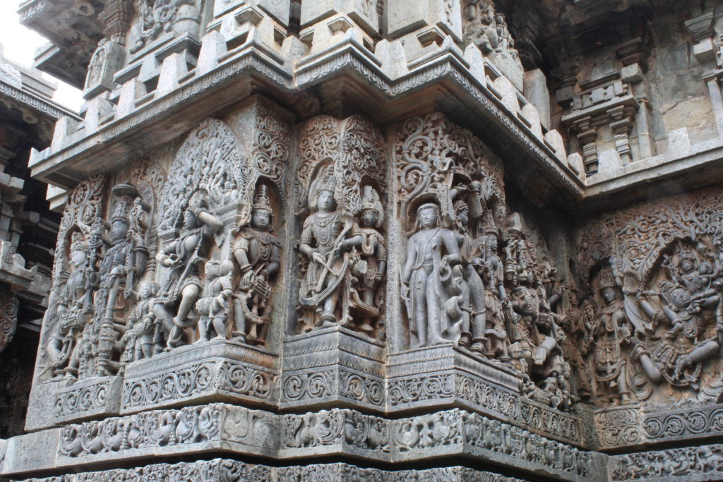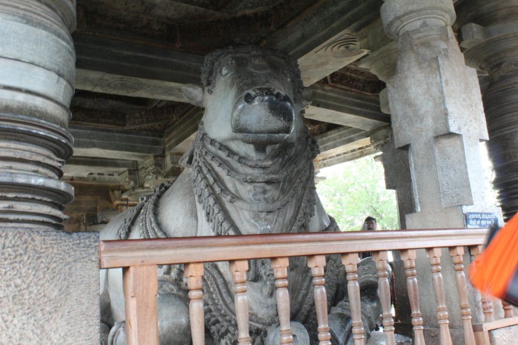 What's in Halebidu : Halebidu is a small little town located in the Hassan district of Karnataka, popular for its twin temples of the Hoysala dynasty. Hale = old and bidu = abode, stands for old abode or old capital . Our guide told us it's also known as 'Dwarasamudra' - (entry by sea) and I started wondering how could a samudra (sea) come in this place! Later I was told that a huge tank was built here by King Vinayaditya of the Hoysala dynasty. As per historical records, the Hoysalas ruled from Belur (17 kms from Halebidu) along the banks of the Yagachi river. Later, King Vinayaditya built a canal to channelize water from the Yagachi river to a newly built tank along the banks of which Halebidu flourished. Now that explains why it was also known as Dwarasamudra! The tank is long gone now and all that can be seen are lush green fields surrounding the temple complex. The Hoysala period boasts of numerous exquisitely carved temples. It is said that more than 1500 temples were built during their reign out of which hardly 100 survive today. Halebidu twin temples is one of the Hoysala trio of temples which have been proposed to be listed as UNESCO World Heritage Sites. The other two proposed temples can be seen at Belur and Somnathapura. The intricate details of these temples are simply jaw dropping! It is difficult to describe the exquisite handiwork of the talented craftsmen. No wonder, these temples are huge tourist attractions from world over. How to reach Halebidu from Bangalore : Its a refreshing drive of about 3.5 hours from Bangalore. Halebidu is 210 kms from Bangalore and the drive on NH75 is a breeze. SH21 was okay. Love our National Highways... State Highways need to catch up! We could easily cruise (literally!) at speeds of more than 100 kmph on NH75. The Shiva Temples : The twin temples of Hoysaleshwar and Shantaleshwara stand tall and glorious as a mute testimony to the grandeur of the past. These Shiva temples named after the King and Queen Shantala Devi respectively, are located in the same complex and are still unfinishe. It is said that the work on these temples were interrupted by numerous wars the Hoysalas had to wage to defend their empire. 850+ years later these temples are still almost intact and active, housing the large monolithic Nandis facing the Shiva lingas.d. The temples stand on an elevated platform which has 64 corners and shaped like a star. The geometry of this soapstone structure is simply accurate in every detail. The temple walls are covered with deities depicting tales of our Hindu mythologies from Ramayana, Mahabharatha and others. Similarly, in Belur, the temple walls are adorned with sculptures of apsaras depicting the lifestyle of those times, replete with shringar (fashion), dressing style, hair style and much more. As we enter the temple complex finding our way through the numerous vendors selling guidebooks and knick knacks, we are welcomed by a lush green lawn and paved pathways leading to the entrance. On one side, it houses a museum collection of numerous awe inspiring sculptures of deities which were once a part of this magnificent architecture. The entrance today Dwarapalakas at the entrance. This was the entrance of the Hoysala kings in those days and now is at the opposite end of the entrance today. The Dwarapalakas (guards at the entrance) are so exquisitely carved but unfortunately were destroyed when it was attacked by Malik Kafur in the 13th century. The Archaeological Survey of India tried to repair the damage in vain. I guess perfection cannot be repaired. They could not conceal the damage done, in a graceful way and left it as it is. Photography inside the temple premises is prohibited. After taking darshan and teerth, we proceeded to hire a guide who was very good with her work. With her near perfect English, she walked us around the complex describing every little detail with great interest and enthusiasm. It took us around 2 hours to see the temple at our own slow pace. I am portraying some of the carvings below. A look at it will make you wonder the patience and talent of the craftsmen then. Not only were they adept sculptors but were also proficient in mythologies and other art forms prevalent then. A beautiful sculpture of a Bharatnatyam dancer reveals how knowing the dance steps and the correct posture was essential to the correct portrayal of the dancing sculpture. Bharatnatyam dancer with the correct posture. A look at its feet reveals the details with which the posture and curvature of the foot is captured. The proud expression on her face also leaves us amazed. Queen Shantala Devi herself was an accomplished Bharatnatyam dancer and used to perform in these temples. Uma Maheshwar (usually the deity couple is seen standing in most other temples) Chakravyuh of Mahabharata, where Abhimanyu, the son of Arjuna, entered but could not come out. Govardhangiri - one of the highly commended sculptures at Halebidu Erotic sculpture - reveals how temples in those days were educational centres and sex education was not considered a taboo. The filigree sculptures portraying various Hindu deities and Jain tirthankars together. Jainism and Hinduism coexisted peacefully then [even today:)] Varaha avatar, an avatar of Lord Vishnu, killing a demon. A look at the demon below reveals the vast attention to details - see his eyes are protruding out and even the facial expressions are taken care of! Hoysaleshwar Nandi. This and the adjacent Shantaleshwar Nandi are one of the largest monolithic Nandis found in India The temple visit was fantastic. We also visited Jain basadis (situated within a kilometer), dedicated to Jain tirthankars - Parshavanatha, Shantinatha and Adinatha. These basadis or temples were all built in between the 11th and 14th century. Unlike the Shiva temples, the basadis were not crowded and only a few Jain devotees were singing a holy song in the premises. It was amazing to experience the solitude of these ancient temples. Two -