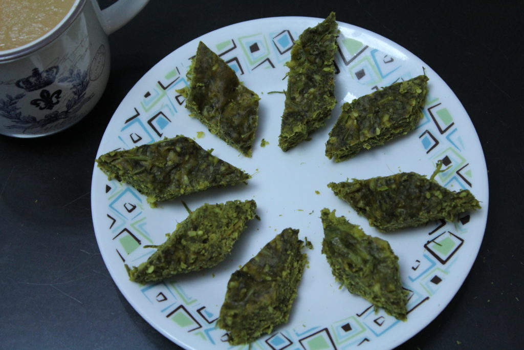 Kothimbir vadi tempered with sesame and mustard seeds Kothimbir Vadi - A Traditional Maharashtrian snack Mom is here and so nowadays our evenings are special with yummy snacks rolling out of the kitchen. Kothimbir vadi or coriander fritters is a healthy snack which can be arranged in no time. The aroma of the fresh coriander leaves cooked into this dish just leaves one craving for more. I gobbled up the steamed ones without waiting for them to be fried or to be garnished with the tempering. Without much ado, here is the recipe for it: Ingredients for Kothimbir Vadi: Finely chopped coriander leaves - 2 cups, tightly packed Besan - 1 cup Ginger-garlic-green chilli paste: 1 inch of ginger, 8-10 cloves of garlic, and 2 green chillies Sesame seeds - 1 tbsp Turmeric powder - 1 tsp Chilli powder - 1 tsp Hing - a pinch Water - little for making the pasty dough Salt - to taste For tempering : 1-2 tbsp oil, 2 tsp mustard seeds, 2 tsp sesame seeds, a pinch of hing, a handful of curry leaves. Heat oil in a small pan and add the tempering ingredients till the mustard seeds splutter and all the aromas get absorbed in the oil. Recipe: Mix all the ingredients listed above except water. Add water in very small quantities to form a pasty dough (somewhat similar in consistency to thick idli batter). Transfer the mixed ingredients to a steamer, greased with oil and steam it for around 12-15 minutes. Note that I have added half the quantity of besan to that of the coriander leaves which yields really fragrant kothimbir vadis. Allow it to cool and cut into shapes of your choice. These vadis can be eaten as it is or can be further shallow fried, deep fried or just tempered with mustard seeds and curry leaves. I had the zero-oil, steamed version and they were just as delicious :) Kothimbir vadi (coriander fritters)