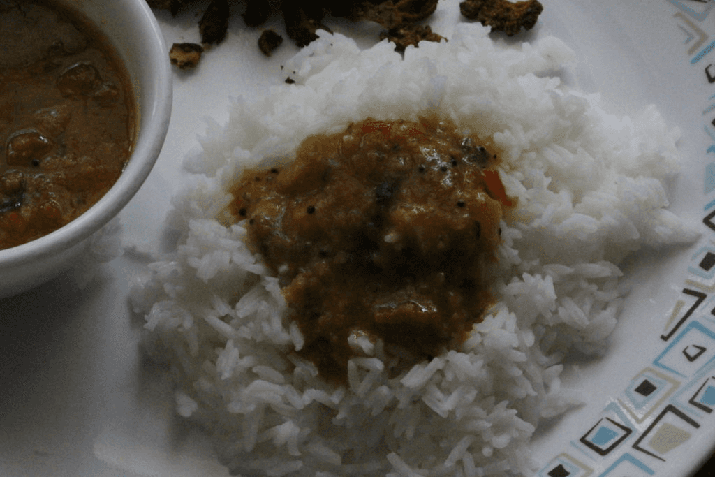 In my mom’s house, we call this Maharashtrian amti – “Kusum tai’s amti”. Smt. Kusumtai Kshirsagar, was an elderly neighbour of ours in Kalyan when I was a little girl. She always used to give us a vaati (bowl) of this amti whenever she prepared it. Being South Indians, we hardly ever made this amti. However, I and my brother grew very fond of her amti, and till date, we remember her whenever we make this type of dal. Amti + bhaat + toop = Heaven