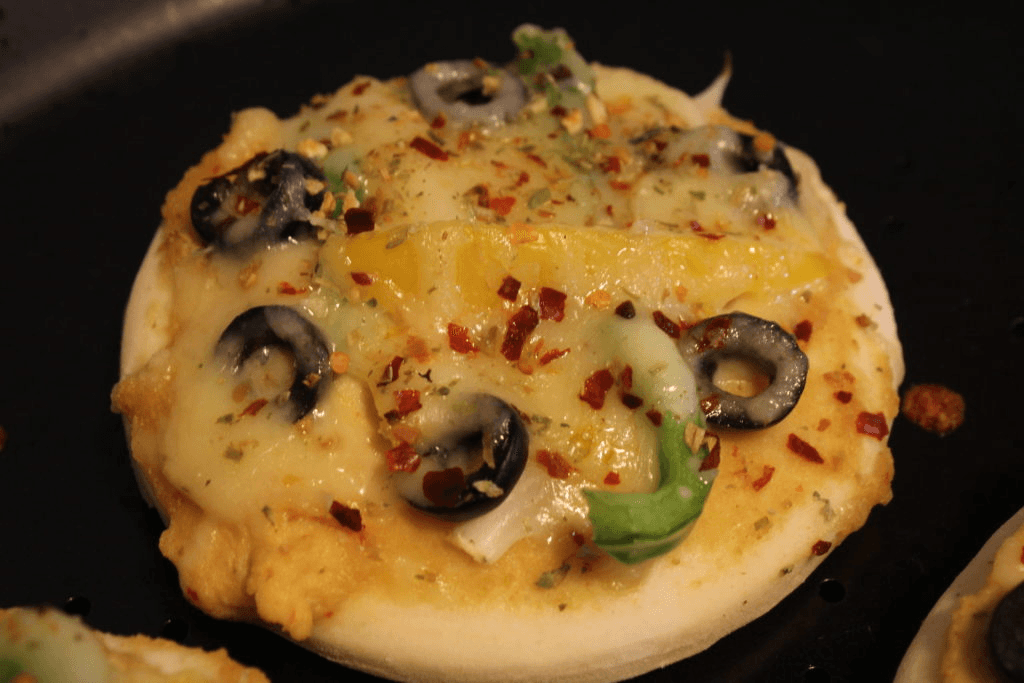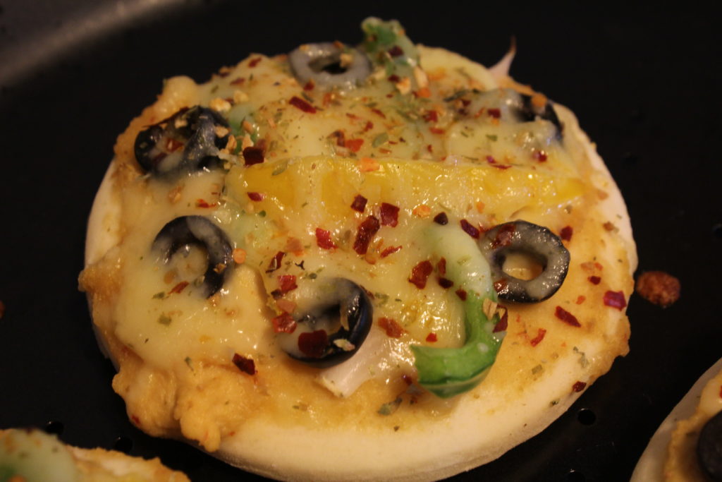 A good after-school snack for kids with the goodness of hummus, vegetables and cheese! Not only pretty but yummy too. My son comes home from school and smells around saying -“something nice is baking in the oven!” I am a bit apprehensive if he would like this twist in the pizza with hummus and olives in it…and he loves it!