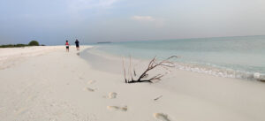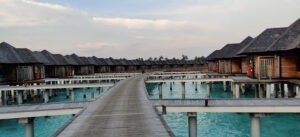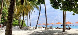 Our island was not very big and it took us about an hour to circumambulate the entire island. From one end, we could see the Indian Ocean stretching miles together as far as our eyes could reach and from the other end, we could see another resort island dotting the horizon. We had booked a private pool villa for ourselves overlooking the beach.