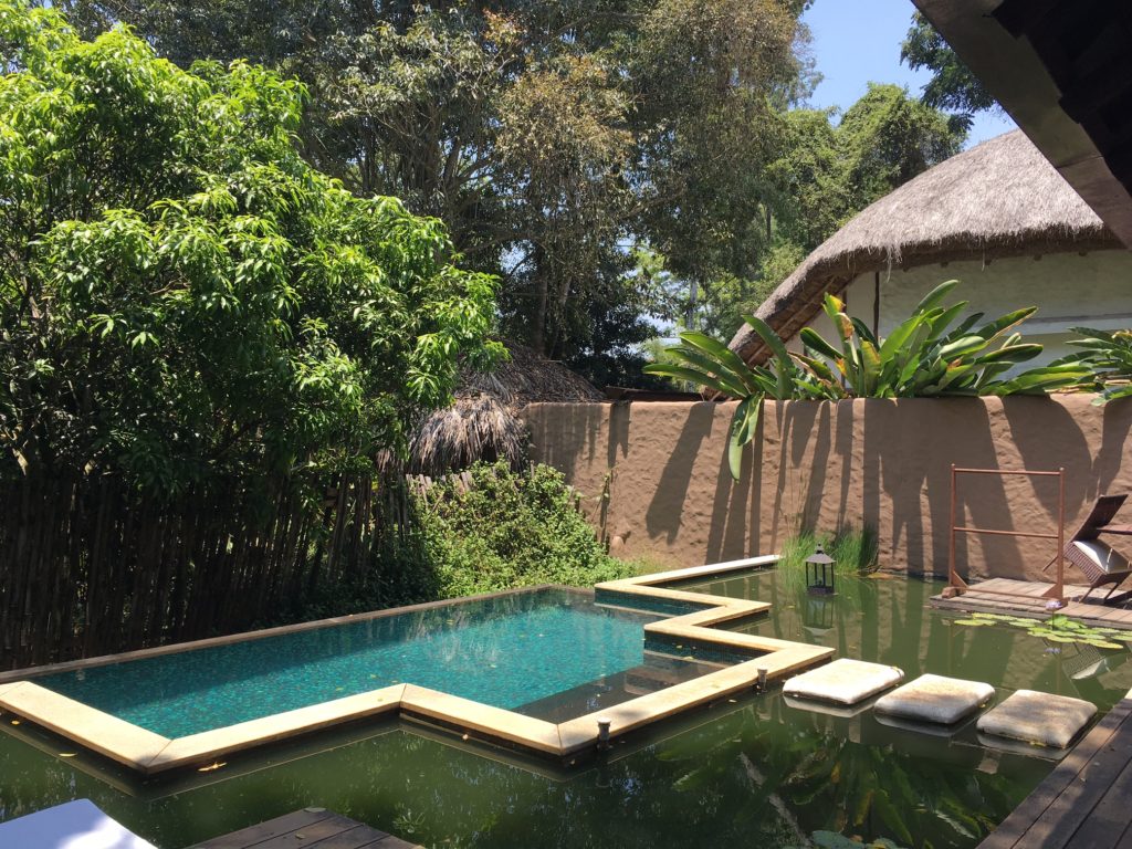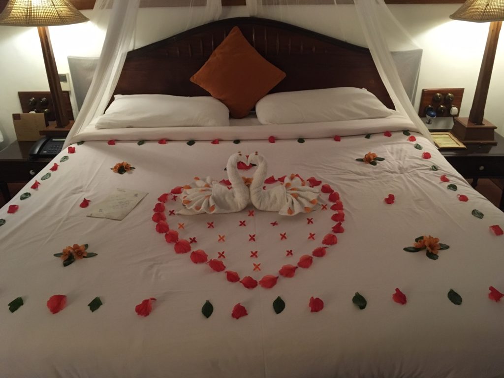 A revisit to Orange County, Coorg, had been planned again after ten long years... with our little son in tow this time! This resort had etched itself a special place in our hearts a decade ago with its wonderful hospitality, super delicious food and its aromatic filter coffee from its very own plantation! We had fond memories of the resort and were looking forward to visit it again. The ride from Bangalore to Coorg was a smooth one except for the last 3 kilometers or so on the plantation's mud road which took us inside to the gates of the resort. We took NICE road and hit the Mysore expressway before taking a diversion for Coorg near Mysore. It took us approximately 6 hours to reach the resort with an hour-long stop at A2B on the way for a scrumptious South Indian breakfast. At the resort, we were welcomed with a refreshing cool, coffee drink infused with coconut milk. Unique as it was, it was equally pleasing to the palate as well. The electric buggies (similar to golf carts) carried our luggage while we walked down to our cottage. On this occasion, we had booked the Lily Pool Cottage with a private pool and jacuzzi with it. My son loves private pools as he get to soak himself in the cool, inviting waters of the pool, anytime of the day. He also had a gala time playing with the fishes in the adjoining lily pool. I am sure he must have been some water fairy/elf in his previous birth which explains his fascination with water ;) Lilly pool cottage Complimentary fresh fruits and cashews, refilled daily Private Pool with a Lilly pond The inviting bed The lilly pool outside the bedroom Having reached at around 1 pm, we decided to have lunch at Peppercorn, their grill and sizzler place which is overlooking a gorgeous lake adjoining the Dubare forest. The lunch had a North Indian set menu from which we could order. The food was amazingly delectable. Words cannot do justice to the food :) One has to go there and savour the experience themselves. The ambience, the fact that we were the only ones in the restaurant for a long time, and the excellent customer service made our lunch quite memorable. Seated @ Peppercorn It's hard to overlook the hospitality of the staff there. Even the sweepers and cleaners exchange smiles and a courteous 'namaste' when the guests pass by. The resort has employed many locals there and it is quite obvious the wonderful, hospitality training they have gone through. Their other restaurants, The Granary and The Plaintain Leaf (their traditional, all-vegetarian restaurant) which serve North Indian/Continental and the local South-Indian/Kerala cuisine respectively, are worth raving about too. Granary is set above the common swimming pool and offers a fantastic view across. The Plaintain Leaf too delighted with me with their authentic South-Indian fare like Cherupayar curry, Kadala curry served with puttu, idiappams, kurma etc. etc.. It's not everyday that I get to taste the local cusine of the land, that too so yummy :) The Ayurvedic touch they added to their food through digestive drinks (like Zandu Pancharishta), and herbs-infused water was a silver-lining to the whole gastronomic experience. Digestive drinks are highly needed in OC though! No guesses for the reason :D As plentiful the food options are, so are the activities planned out by the resort for their guests. It will take at least a minimum of 3 days of stay to enjoy all the planned activities - plantation walk, nature walk through the Dubare forest reserve, coracle ride on the Cauvery, bird watching, fish feeding/fishing, village tour, worker's trail, cultural entertainment program at night around a bonfire, and a story corner focusing on the Coorg culture and heritage right after. They have a play centre for kids just across the pool and have some activities planned for the kids as well - such as a paper recycling workshop in the mornings and some games/contests during the day. I guess they offer daycare services as well. Their Ayurvedic spa- Vaidyasala, offers some rejuvenating massages and treatments; however, we did not book the spa this time. We were just simply busy with the activities, gorging on food, sipping coffee and relaxing in their reading lounge. The reading lounge is atop the paddy fields with a panoramic view of the forest and plantations, and also offers a gratis supply of coffee-on-demand while we browse the books. Truly, a stay at OC, Coorg is simply a complete relaxation package without having to worry about anything! Of course, I mean the cost as well, as the stay is all-inclusive of food and activities - no extra hidden charges ;) The OC staff even helped me put together a surprise birthday celebration for my hubby and decorated the bed with lovely flowers and swans. A small cake, a hand-written birthday wishes and the floral decorations made the celebration really special. No guesses for who enjoyed all this and the cake the most...our sonna :) The decorated bed We couldn't enjoy all the activities as we were short on time and my son too refused to stay back at the activity centre for some activities where he wasn't allowed. Children under 12 were not allowed to enter the forest or take a bicycle ride to the nearby village. However, I took the nature walk for 2.5 hours while my husband graciously looked after our son. The walk through Dubare and along the banks of Cauvery was fantastic. We spotted a group of wild elephants just 100 metres away from us. The walk through the forest was a rough one, in the sense that we had to clear the path of thorns and branches to make way for ourselves. These were animal paths and we were made our way through it with our excellent guide and naturalist, Mr. Vishwanath, who made the walk all the more informative and thrilling. On the banks of the Cauvery inside the Dubare Reserve The story-telling session at night was another informative program OC, Coorg has recently started for their guests. We were served some delicious coffee wine (the resort owner, Mr