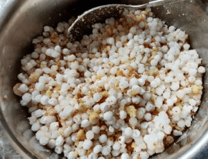 Sabudana mixed with peanut powder, salt and sugar |
