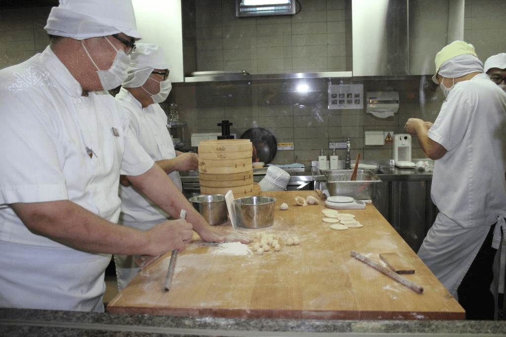 Chefs busy making baos and dumplings in Din Tai Fung |