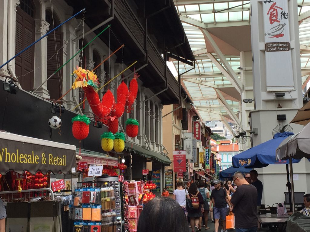 However, unlike Little India, we visited Chinatown mainly to explore the culture and ethos of the Chinese immigrants there. Right at the entrance of Pagoda street (one of the main shopping street in Chinatown) is the Mariamman temple, the oldest Hindu shrine in Singapore. I covered my knees with a sarong wrap to enter the temple, but was not allowed to go close to the sanctum-sanctorum as visitors to the city were not allowed beyond a point.