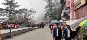 Lakkar Bazaar with the famous eatery, Sitaram & Sons in the background |