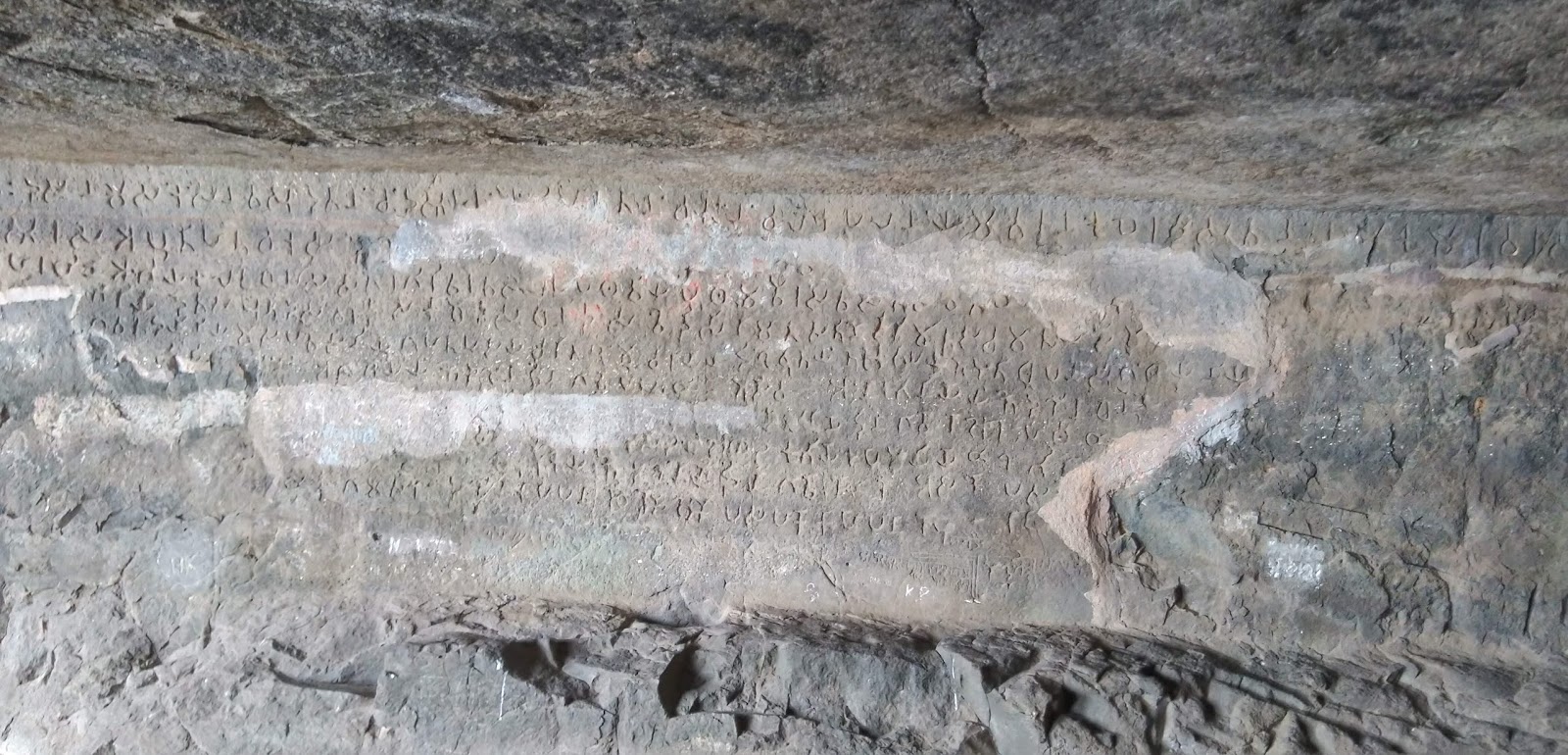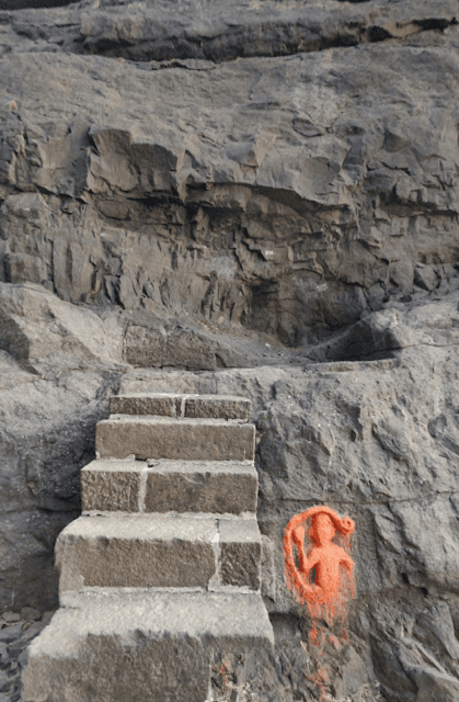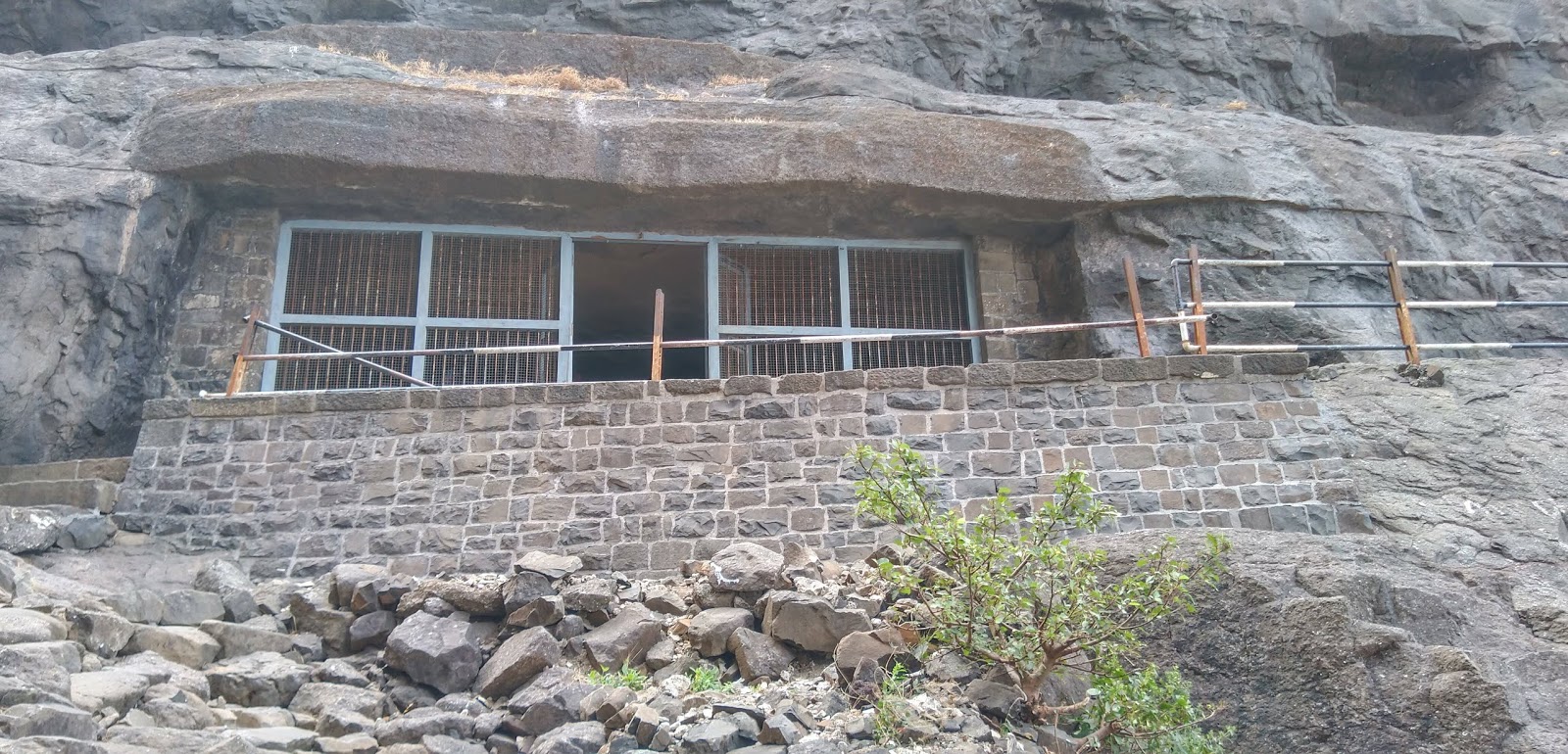 The cave was soon in sight. Protected by railings, it looks like a grand modern-day balcony carved out from the mountain. The cave inside is quite large with Bramhi inscriptions on its walls. Naneghat comes under the Archaelogical Survey of India (ASI) and a caretaker from the nearby village (on the plateau) is appointed to clean and maintain the place.