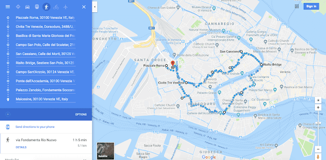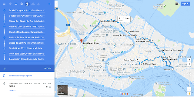 Tip: The distance and time for walking depicted on maps here is just for reference. We took many more hours and walked more than double the distance mentioned here while exploring the various nooks and corners of Venice.