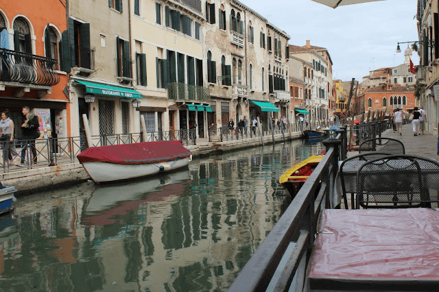 Soon enough, we leisurely sat at a pasticceria (bakery) near a canal, sipping on hot latte and munching on an cloyingly sweet chocolate cannelloni. The combination of the slightly bitter coffee with the sweet chocolate was not that bad! To add to the breezy experience, numerous gondolas rode past us carrying with them happy families with a big smile on their faces. These gondolas glided past us at just an arm’s length from where we sat, brushing on their happy excitement to us.
