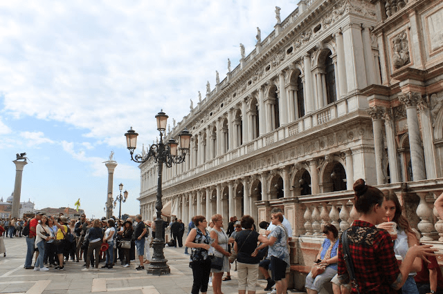 The piazza or the square is huge and the first magnificent building that we noticed from the waterfront was the Doge’s palace. The palace was the residence of the Doge of Venice, the supreme authority of the Republic of Venice and is built in the Gothic Venetian style.